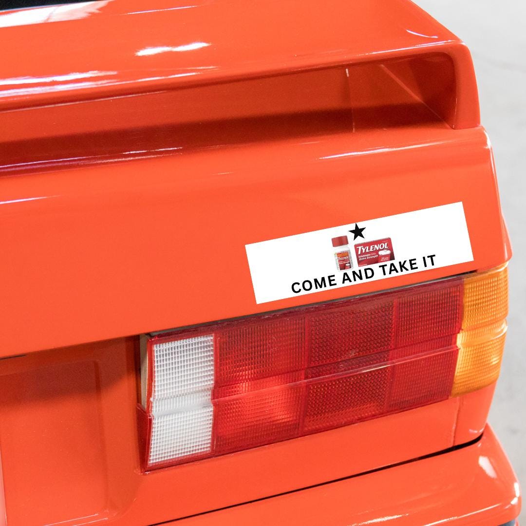 Because satire is all we have left. You don’t buy this sticker to “make a statement.” You buy it because you know our cultural discourse is a joke, and the punchline is Tylenol somehow ending up in a Fox News chyron next to Trump and RFK Jr.