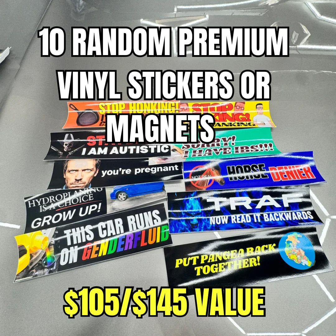 The math is simple: buy more, get more free, still pay $0 shipping. Stickers are light, magnets are mighty, but either way, the chaos ships free