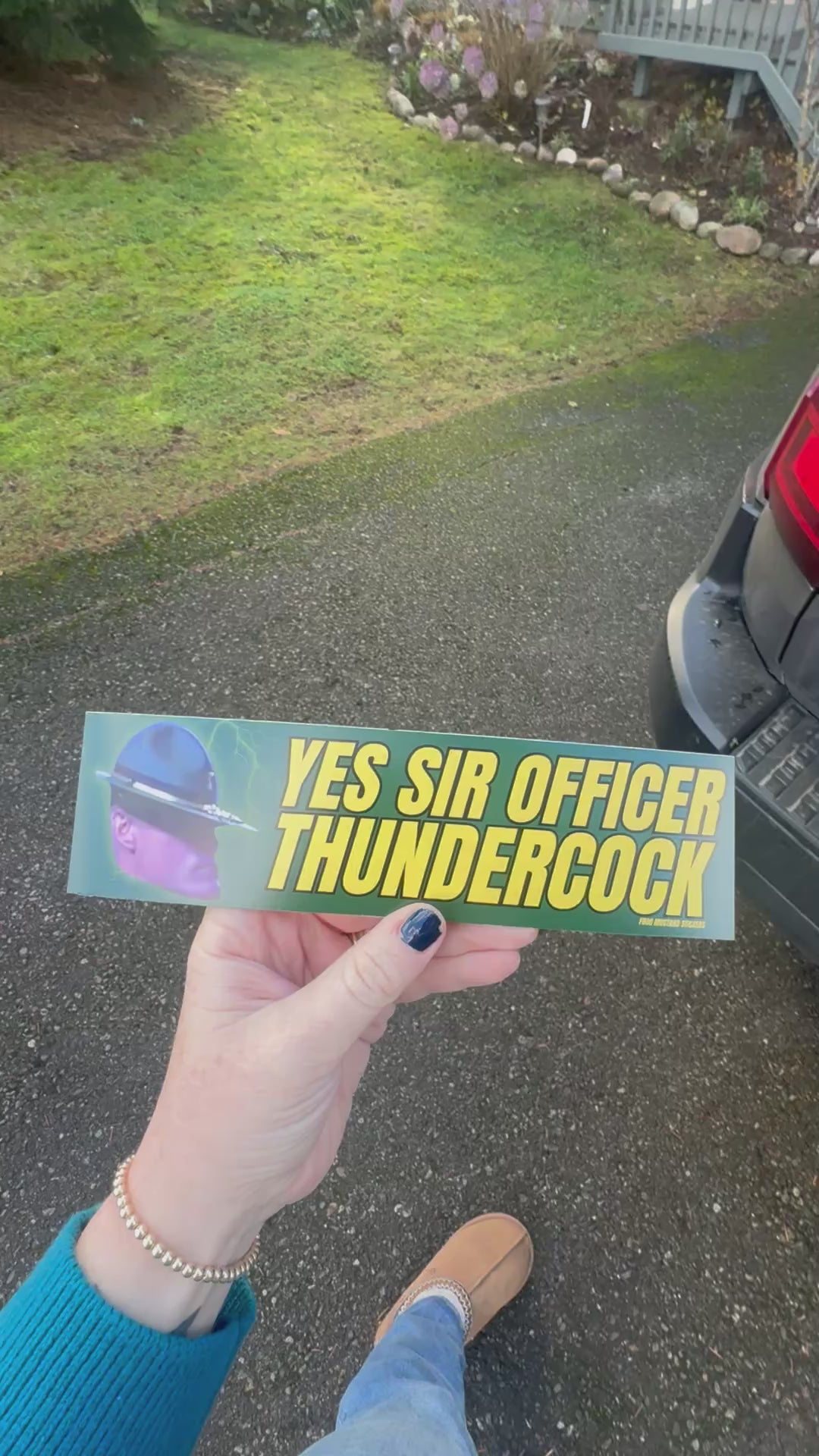 If you want subtle, safe, vanilla—look elsewhere. If you want loud, weirdly satisfying, “did you just…” conversation‑starting gear, this is your Sticker. The road is your stage. Rip the world’s seriousness off your bumper and give them Yes Sir Officer Thundercock.